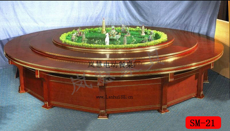 現代中式風格電動轉盤圓形餐桌電動餐桌以其特的藝術魅力和民族特色深受大家的喜愛,有些精品電動餐桌更是逐漸流入收藏領域。