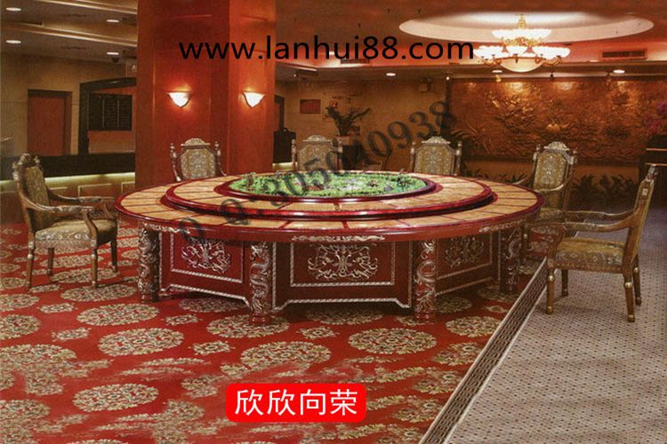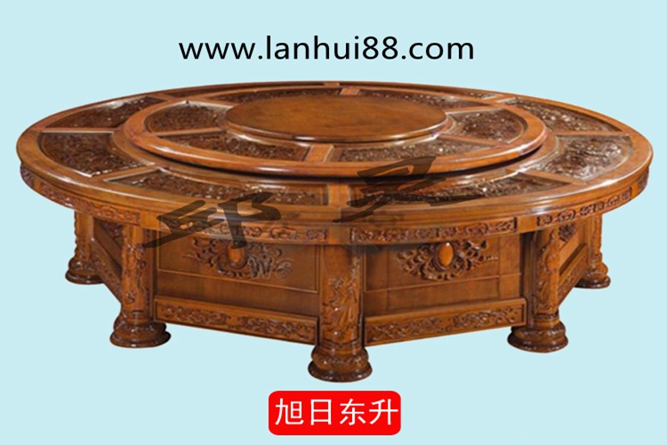 ,使用時轉盤可以根據設置自動低速旋轉,方便用餐人員,夾取食物菜肴。一般有手動設置勻速和變速兩種。一般配有遠程遙控器,方便侍者服侍。多用于高檔酒店包間,采用實木,密度板,多層等板材制造而成。轉盤多為鋼化玻璃或者實木面制造。電動